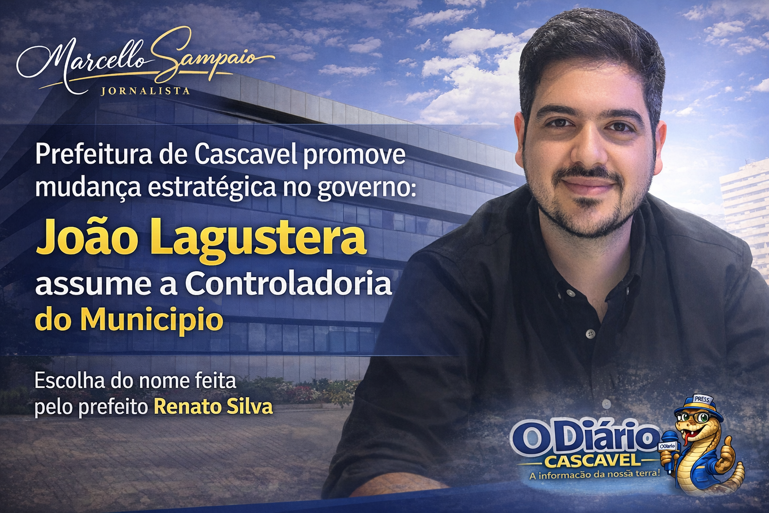 Prefeitura de Cascavel promove mudança estratégica no governo: João Lagustera assume a Controladoria do Município