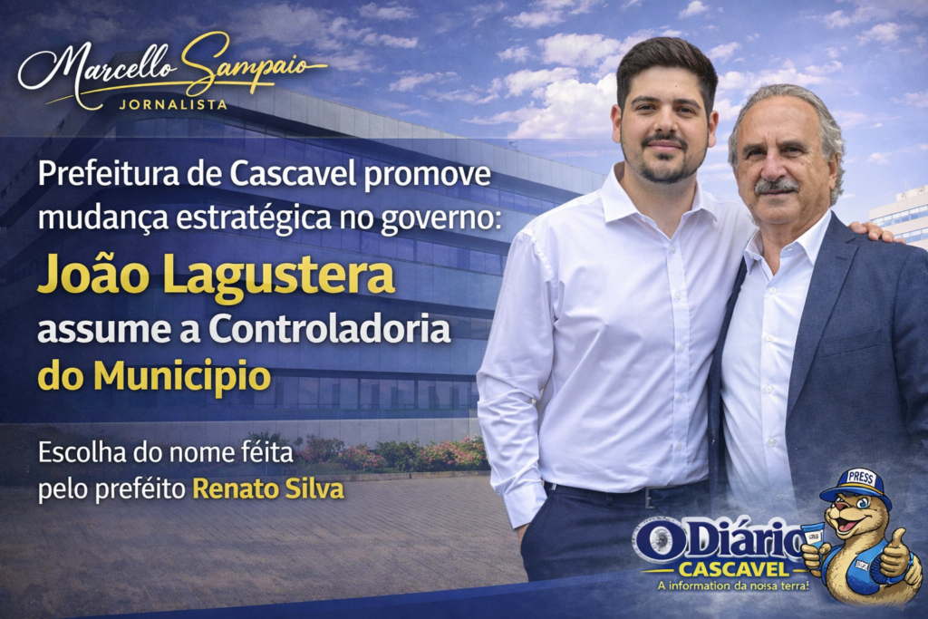 A Prefeitura de Cascavel inicia uma nova etapa administrativa com a nomeação de João Lagustera para o comando da Controladoria do Município, uma das áreas mais estratégicas da estrutura pública. A decisão, assinada pelo prefeito Renato Silva, integra o processo de reorganização do governo municipal e marca um movimento claro de fortalecimento institucional, governança e responsabilidade administrativa.
